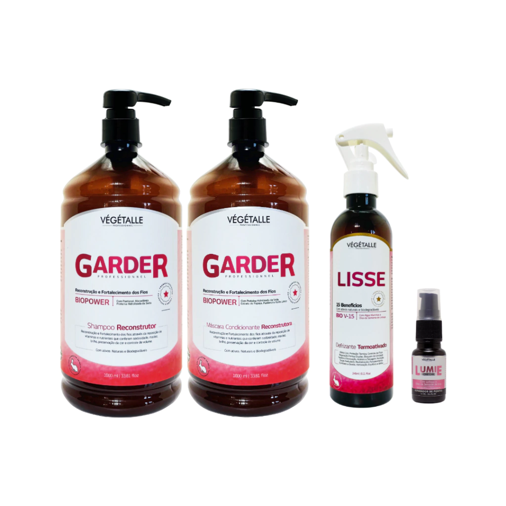 Kit Shampoo Hidratante Garder Profissional Care (1100ml) + Máscara Condicionante Garder Profissional (1100ml) + Defrizante Lisse (240ml) + Reparador Lumie (15ml)