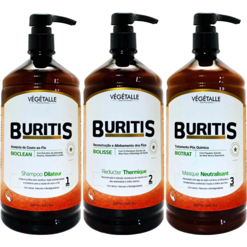 Passo 3 - Masque Neutralisant Biolisse Buritis: Máscara finalizadora e neutralizadora. A MASQUE NEUTRALIZANT age neutralizando os efeitos de agentes químicos nos processos de alinhamento dos fios, descoloração e coloração, hidratando, nutrindo e revitalizando os cabelos, formando um filme protetor, doando brilho e sedosidade de forma duradoura.